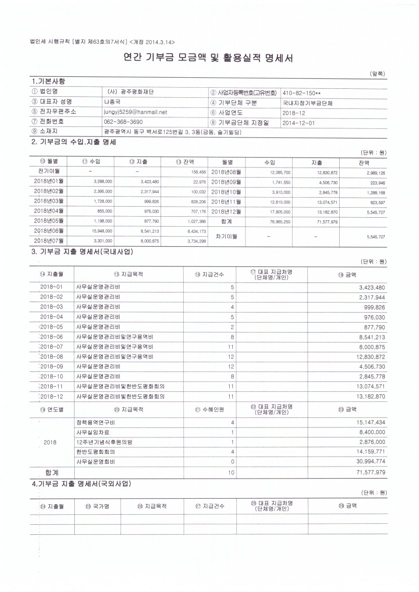 연간 기부금 모금액 및 활용실적 명세서 페이지 정보 작성자 광주평화재단 작성일19-03-30 11:54 조회419회 댓글0건 관련링크 이전글 목록 본문 연간 기부금 모금액 및 활용실적 명세서 댓글목록 등록된 댓글이 없습니다. 이전글 목록